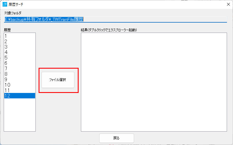 保存済みの履歴番号(数値が大きいほど最新)を選択して「ファイル選択ボタン」をクリック。