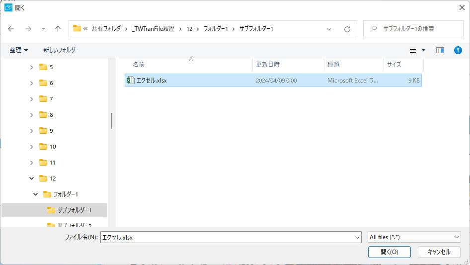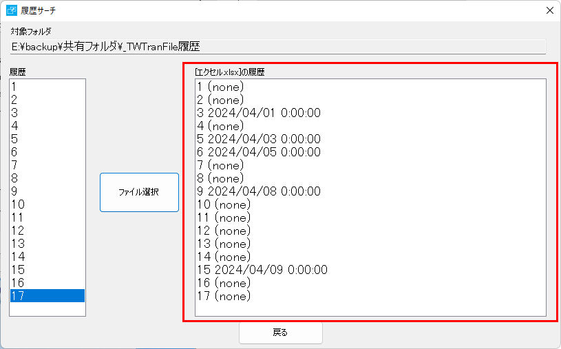 日時は、ファイルが履歴フォルダ存在してその更新日を表示しています。